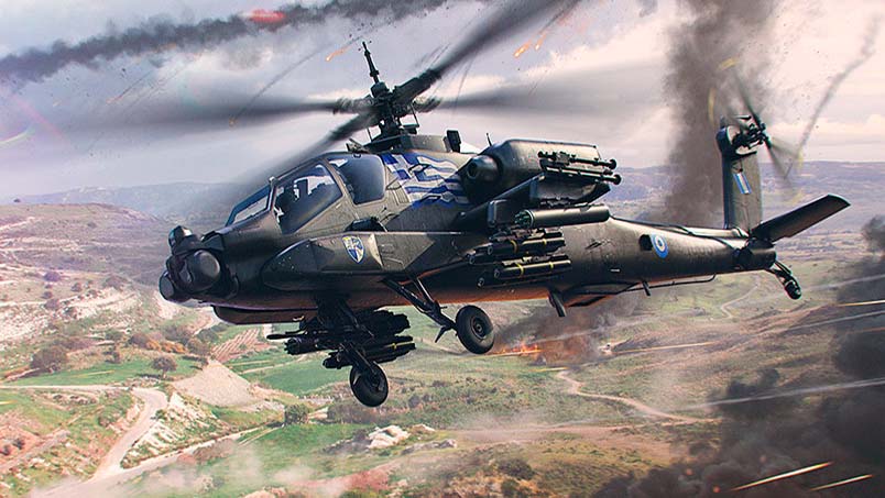 The AH-64 "Apache" is easily one of the most recognizable and effective helicopters of all time. This variant sports the livery of the 1st Helicopter Battalion of the Hellenic Army Aviation Brigade when it participated in the Athens Flying Week airshow in 2013. The AH-64 "Apache" is easily one of the most recognizable and effective Armed with the M230E-1 30 mm cannon with powerful HEDP rounds, it can tear through the roofs of ground vehicles and take down aircraft alike. Alongside rockets, it can equip a whopping 16 AGM-114B Hellfire missiles with 1100mm of penetration power. It also has a high-powered thermal optic with great zoom, which lets you get a clear picture of your enemy from miles away. For enemy aircraft, you can equip both AIM-9L and Stinger missiles to keep them at bay, along with onboard countermeasures to defeat enemy missiles. The Apache makes for a highly effective helicopter for both long-range tank hunting and for keeping the skies clear of enemy aircraft.