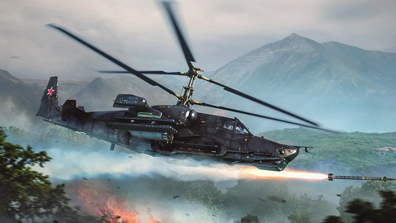 The legendary Ka-50 “Black Shark” is one of the most powerful helicopters developed by the USSR, designed throughout the 1980s and accepted into service in 1995. Much like its namesake, the Ka-50 is armed to the teeth. It features a 30 mm 2A42 autocannon with a full APDS belt to cut through the roofs of enemy tanks, along with a heap of extra weaponry. Alongside unguided rockets and bombs, you can equip twelve 9K127 Vikhr guided missiles — these are accurate beam-riding missiles that can cut through 800mm of tank armor! You can even equip four extra double-barreled 23 mm gun pods and 9M39 Igla air-to-air missiles to take down enemy aircraft. Despite its large size, the unique rotor design allows the Ka-50 to maintain agility in combat, and extra chaff and flares will help keep you safer still. The Black Shark is a powerful helicopter in every respect, fielding efficient anti-tank and anti-air weaponry fit for every situation.