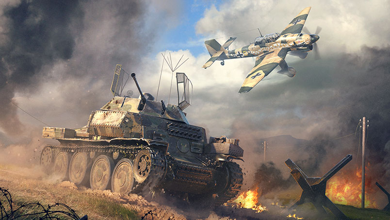 The Sd.Kfz. 140/1 (or Aufklärungspanzer 38(t)) is a light tank designed for recon duties. Being fully tracked, it's more suitable for traversing rough terrain quickly, where contemporary wheeled vehicles would struggle. Equipped with the fast-firing KwK38 20 mm cannon with HVAP rounds, the 140/1 can quickly tear through light vehicles from the front and many stronger opponents from the side and rear, which it can reach comfortably thanks to a 160 hp engine. The cannon can also point almost directly upwards, allowing you to use the Sd.Kfz. 140/1 as an anti-air vehicle if the situation calls for it. The 140/1 excels at fast close-range engagements where its cannon has the most power, alongside quickly capturing strategic points from the outset thanks to its impressive speed. Ju 87 R-2