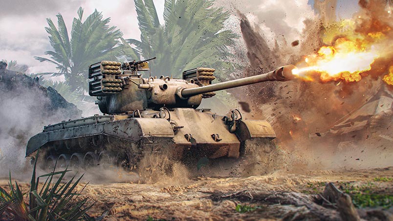 The M26 T99 is an experimental modification of the American M26 Pershing tank, designed to enhance firepower through the integration of the T99 Rocket Projector system. This modification was considered a potential replacement for the M4 Sherman equipped with the T34 Calliope rocket launcher. The M26 T99 is suited for various combat roles, including suppressing fortified positions, destroying enemy vehicles, and providing infantry support on the battlefield. The tank’s armament includes the T99 rocket system, which fires 114mm M8 rockets (44 rockets in total), as well as its standard weaponry: a 90mm M3 cannon with 70 rounds of ammunition, a 12.7mm M2HB heavy machine gun with 600 rounds, and a 7.62mm M1919A4 machine gun with 5,000 rounds. |