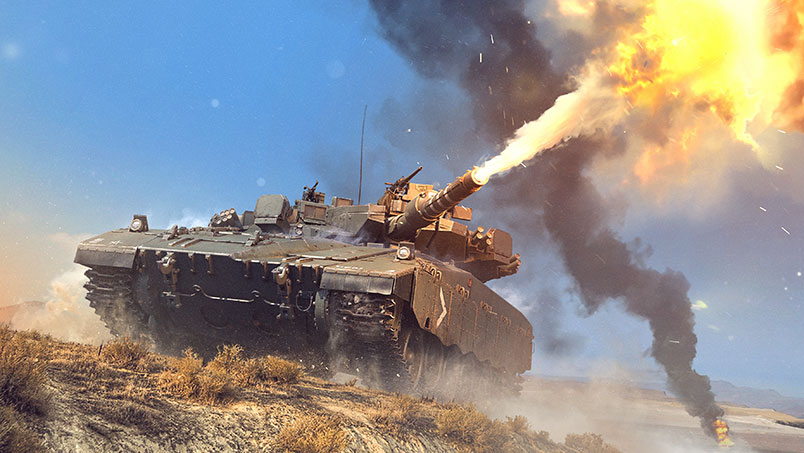 The Ra’am Sagol is an advanced modification of the Merkava Mk.3, featuring extra protection for the turret sides along with several other upgrades. It’s equipped with a 120 mm cannon firing HEAT-FS, timed HE shells, and the powerful M332 APFSDS round which chews through armor with ease. It comes with a laser rangefinder, thermal sight, and a laser warning receiver, this device alerts you if an enemy is aiming a laser at your vehicle and indicates where the laser is coming from. Due to its unique design, the Merkava boasts quite effective hull-down survivability, as no ammo is stored in the turret, making it very effective in defensive positions — though its 1200 hp engine will keep it moving at high speeds across the battlefield for more aggressive maneuvers. The Ra’am Sagol is a versatile MBT with many technological advantages while still offering impressive raw power in its armor and firepower. |