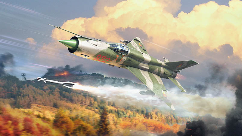 The MiG-21bis “Lazur-M” is an export version that was delivered to the German Democratic Republic in 1975. The MiGs equipped with Lazur-M guidance equipment were chiefly assigned to air defense./p> The Lazur-M model boasts impressive flight performance with great agility and climb rate, along with a wide array of missiles. Most notably, you can mount six powerful R-60MK air-to-air missiles, which are highly potent at close ranges, along with a rapid-fire double-barreled 23 mm cannon. It also comes equipped with chaff and flares, and several types of ground ordnance, including large and small unguided rockets and bombs, making it a nicely versatile platform despite how nimble and agile it is./p> The “Lazur-M” model is one of the most advanced modifications of the legendary MiG-21, well equipped for fast-paced dogfights and swift attack runs. |