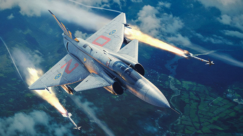 The Saab Ja37DI F21 is a modern variant of the legendary Viggen multirole fighter, capable of performing various roles including interception, escort and ground support. On top of boasting exceptional flight performance, the Viggen is equipped with exceptional air-to-air weaponry. You’ll have access to a set of RB 99 Radar missiles and RB 74 IR missiles (a Swedish variant of the AIM-9L). Under the fuselage is a 30 mm cannon loaded with powerful HE rounds and SAPHEI rounds, useful for destroying light ground targets. On top of this, you can also equip several 135 mm HEAT rocket pods under the wings, which can easily devastate enemy MBTs. Finally, also on board are a set of large-caliber countermeasures to keep you safe from incoming missiles. Featuring a fully customizable loadout, you’ll be able to equip the perfect set of weaponry for any situation, whether it’s controlling the air or demolishing targets on the ground. |