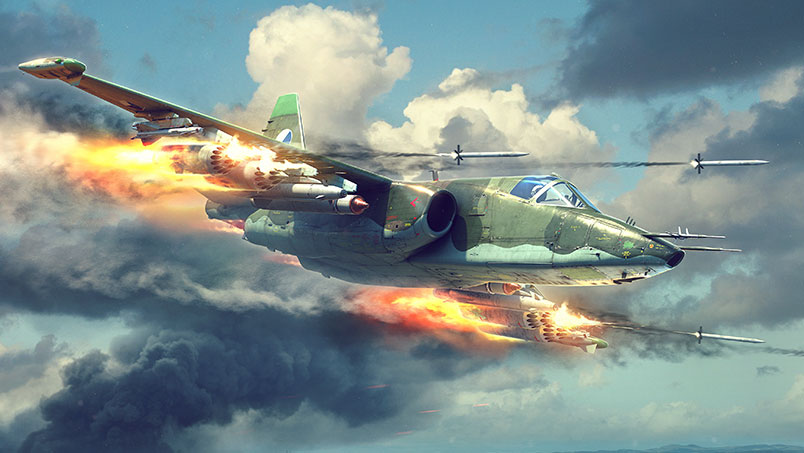 The Su-25K is a special export version developed in the 1980s. The "K" stands for Komercheskiy, meaning commercial. It served in many conflicts, such as the Iran-Iraq War and the Persian Gulf War. Sporting Czech livery, it’s armed with the classic double-barreled 30 mm cannon with just under 20kg per second burst mass! The Su-25K can carry a staggering amount of ground ordnance, from 100 kg to 500 kg unguided bombs, 23 mm gun pods, 180 unguided HEAT rockets, and napalm bombs. It can also carry some more specialized weaponry, including Kh-25ML and Kh-29L guided missiles, and a total of eight S-25O unguided rockets with 58kg of explosives in the warhead! For air combat, it carries two R-60MK missiles on the outermost pylons. These are specific to the R-60MK, so you won’t compromise any ground weaponry by equipping them. It also comes with a high amount of chaff and flares for countering anti-air missiles. The Su-25K is robust and specialized for devastating strikes against ground vehicles with a highly customizable weapon loadout, while its air-to-air missiles ensure that it’s no easy target for enemy fighters either. |