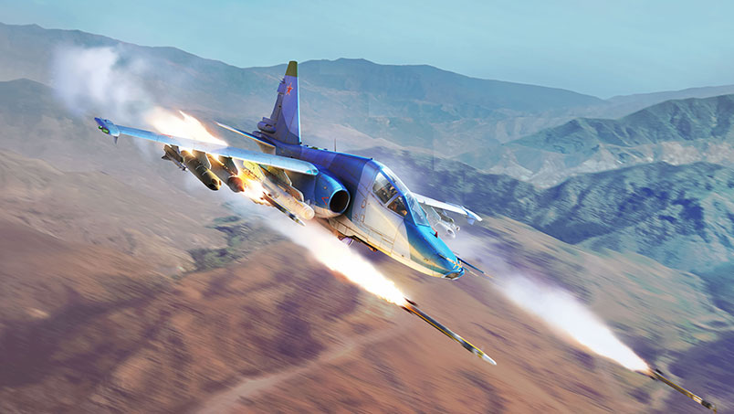 The Su-39 is a special export variant of the legendary Su-25TM attack aircraft and represents one of the most advanced models to date. It’s armed with the twin-barreled GSh-30-2 30 mm cannon, equipped with powerful HE and APHE rounds. In terms of suspended weaponry, it features one of the most extensive loadouts available! Alongside the standard bombs and rockets (of which there are many calibers), you can equip some advanced weapons, such as 9K127 Vikhr anti-tank missiles, laser-guided Kh-25ML, S-25L, and Kh-29L missiles, and several TV-guided munitions, including the KAB-500Kr and Kh-29TE. It can equip either the Kopyo-25 radar pod or the Mercury targeting pod to aid in the usage of these weapons. It also comes with a heap of countermeasures, along with a pair of R-60M and R-73 IR missiles to fend off enemy aircraft. Additionally, it can carry four extra double-barreled 23 mm gun pods to bring its firepower to the next level! While slower than contemporary jets, the Su-39 is a robust and highly capable strike aircraft, fielding some impressively potent weaponry. |